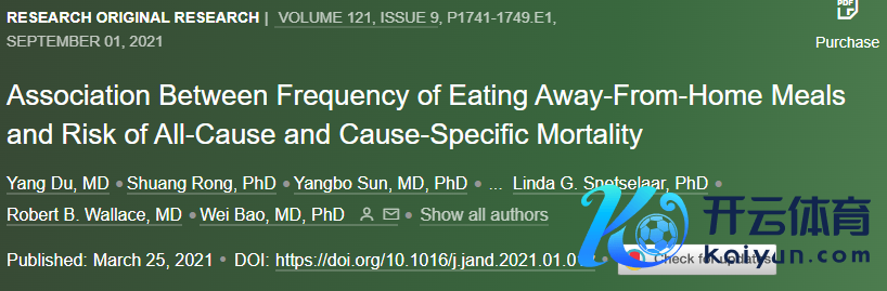 [1]Du et al. Association Between Frequency of Eating Away-From-Home Meals and Risk of All-Cause and Cause-Specific Mortality. J Acad Nutr Diet. 2021 Sep;121(9):1741-1749.e1. PMID: 33775622.