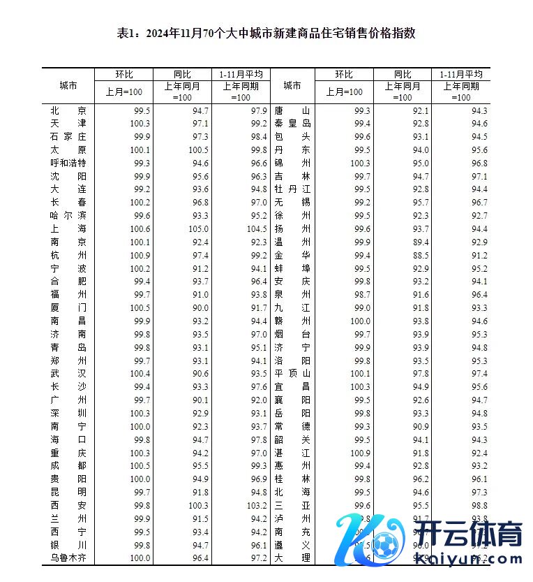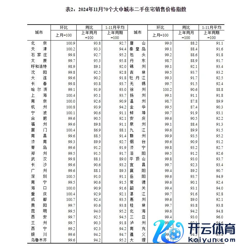 11月份,一线城市新建商品住宅销售价钱同比下跌4.3%,降幅比上月收窄0.3个百分点。其中,北京、广州和深圳永诀下跌5.3%、9.9%和7.1%,上海上升5.0%。一线城市二手住宅销售价钱同比下跌8.0%,降幅收窄1.6个百分点,其中北京、上海、广州和深圳永诀下跌6.2%、4.9%、11.9%和9.0%。11月份,二线城市新建商品住宅销售价钱同比下跌5.8%,降幅比上月收窄0.2个百分点;二手住宅同比下跌8.4%,降幅收窄0.4个百分点。三线城市新建商品住宅销售价钱同比下跌6.5%,降幅收窄0.1个百分点;二手住宅同比下跌8.8%,降幅收窄0.2个百分点。
