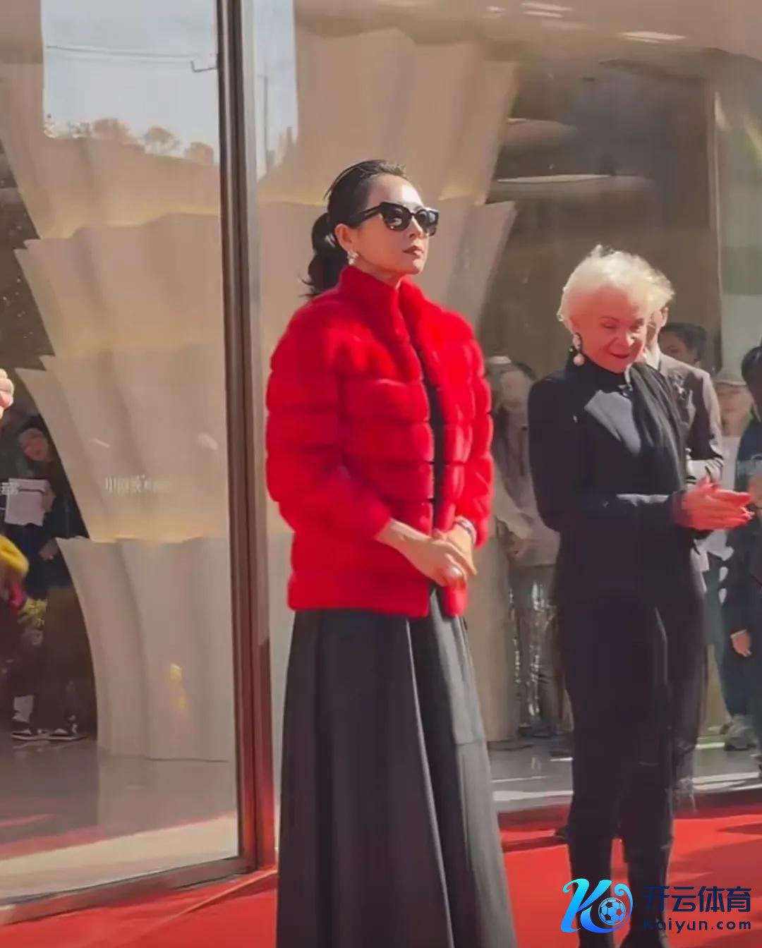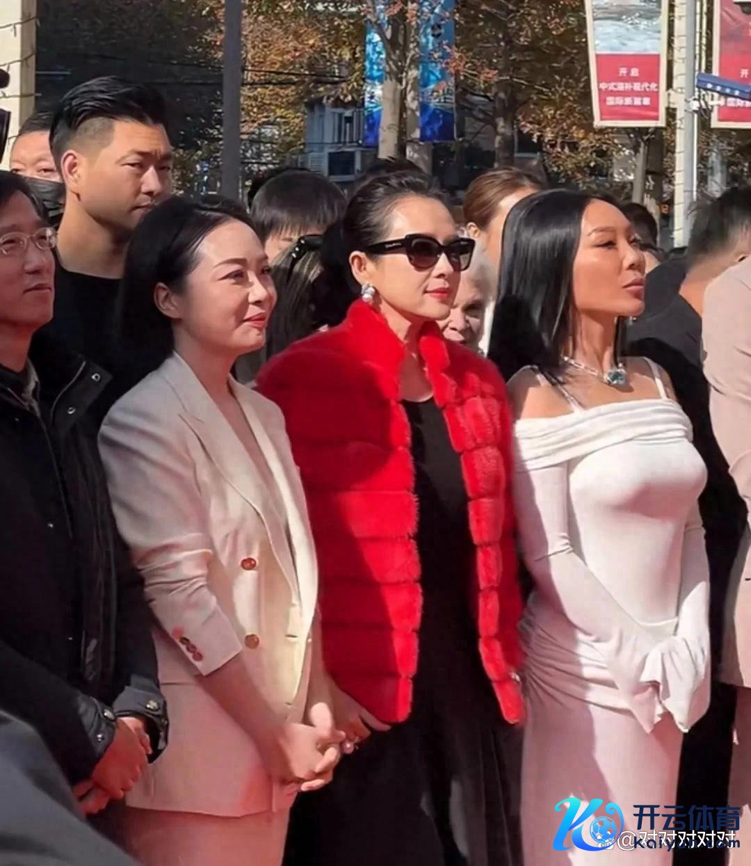 这身打扮对平凡东谈主来说,如实会显得有些暮气,搭配不当以致还可能显得土味,尤其是这件红色狗尾续毛外衣。联系词,关于章子怡来说,却更能展现出她的高贵与雍容。