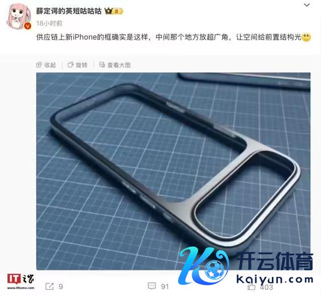 另一个是 @薛定谔的英短咕咕咕,在微博发布一张堪称是“供应链上新 iPhone 的框”像片,并称该机“中间阿谁地点放超广角,让空间给前置结构光”。