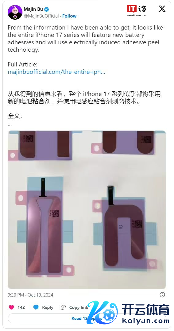 终末是电板。据@Majin Bu 暴露,iPhone 17 全系会继承新的电板粘合剂。