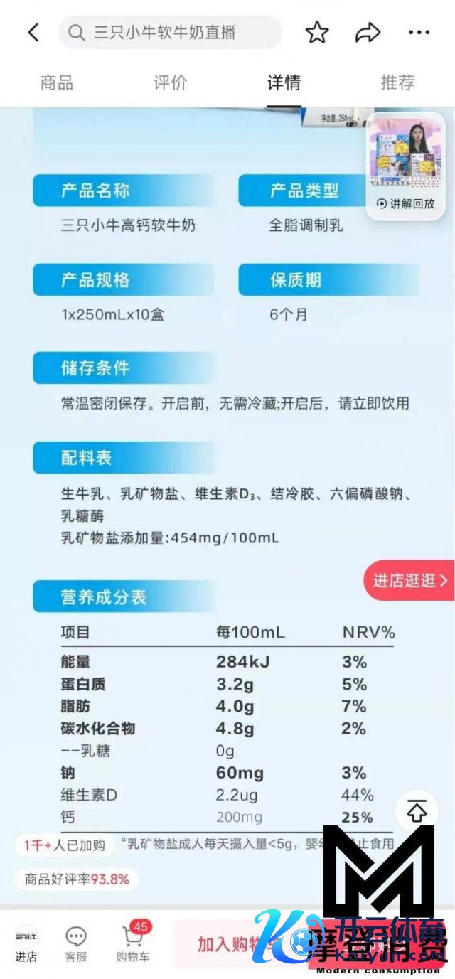 "破钞者在线下商超依旧更容易买品牌熟悉度高、配料表干净且价钱允洽的品牌。"商超内液态奶促销员张亮向「摩登破钞」暗示,"这款(三只小牛)卖得一般。"
